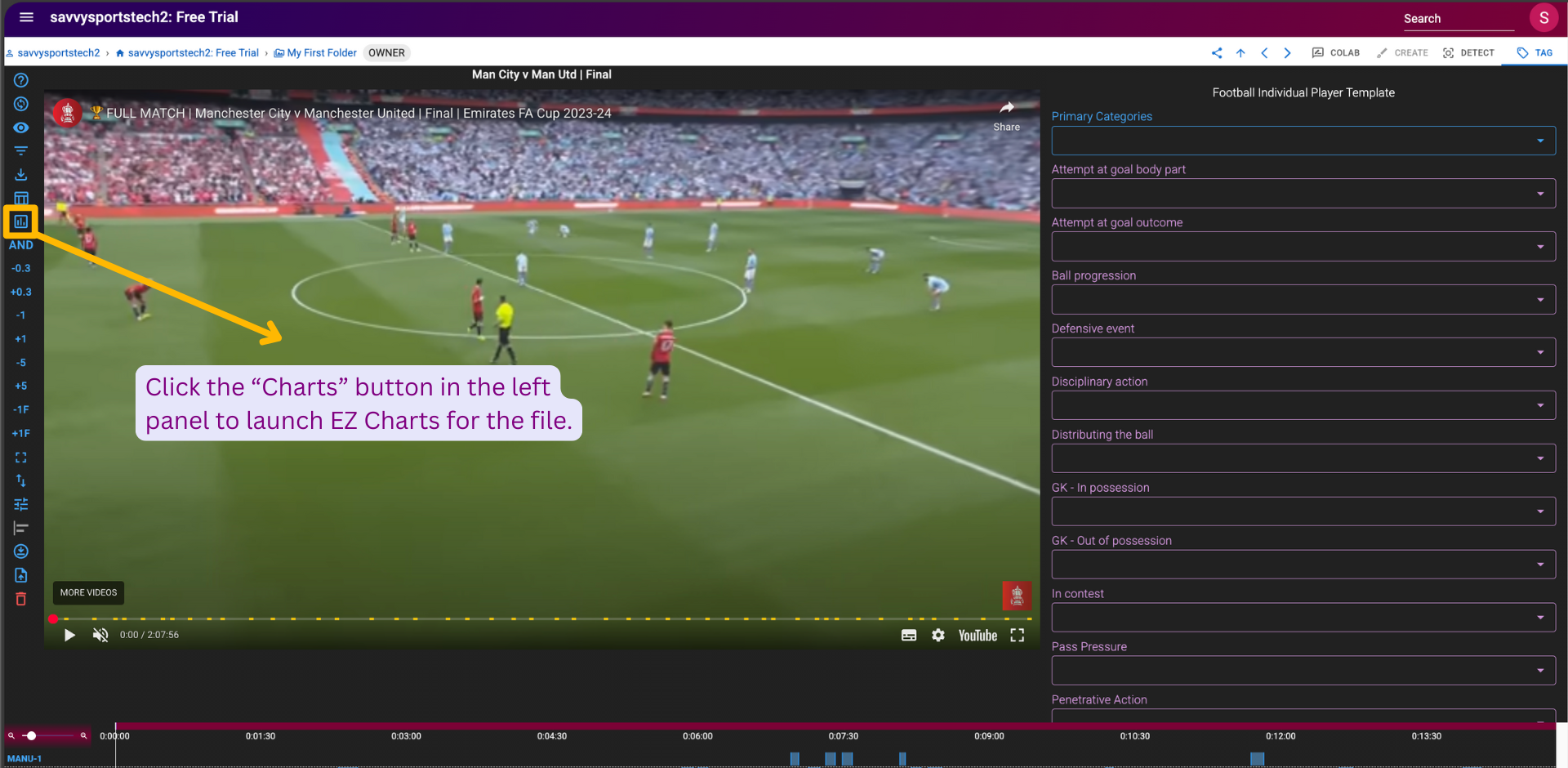 After opening the file in the Tagger app, click the "Charts" button in the left panel to launch EZ Charts for the file.