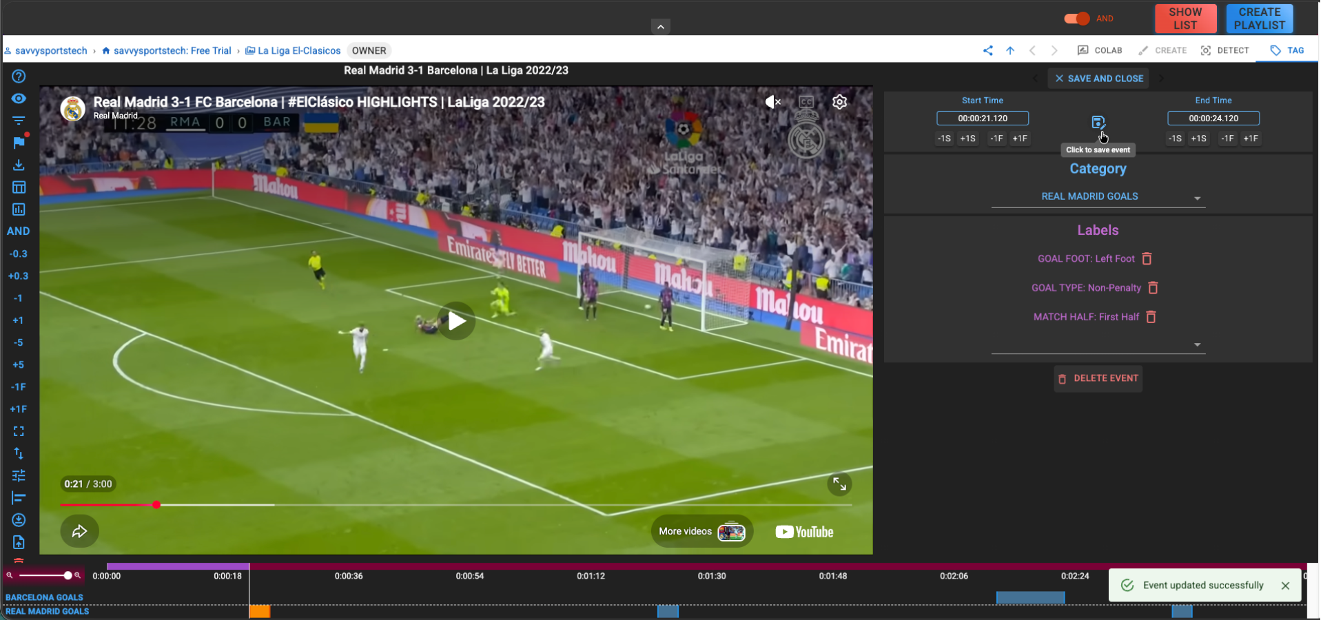 Once clicked, a success message "Event updated successfully" will be displayed at the bottom right of the page, indicating that the event has been updated.