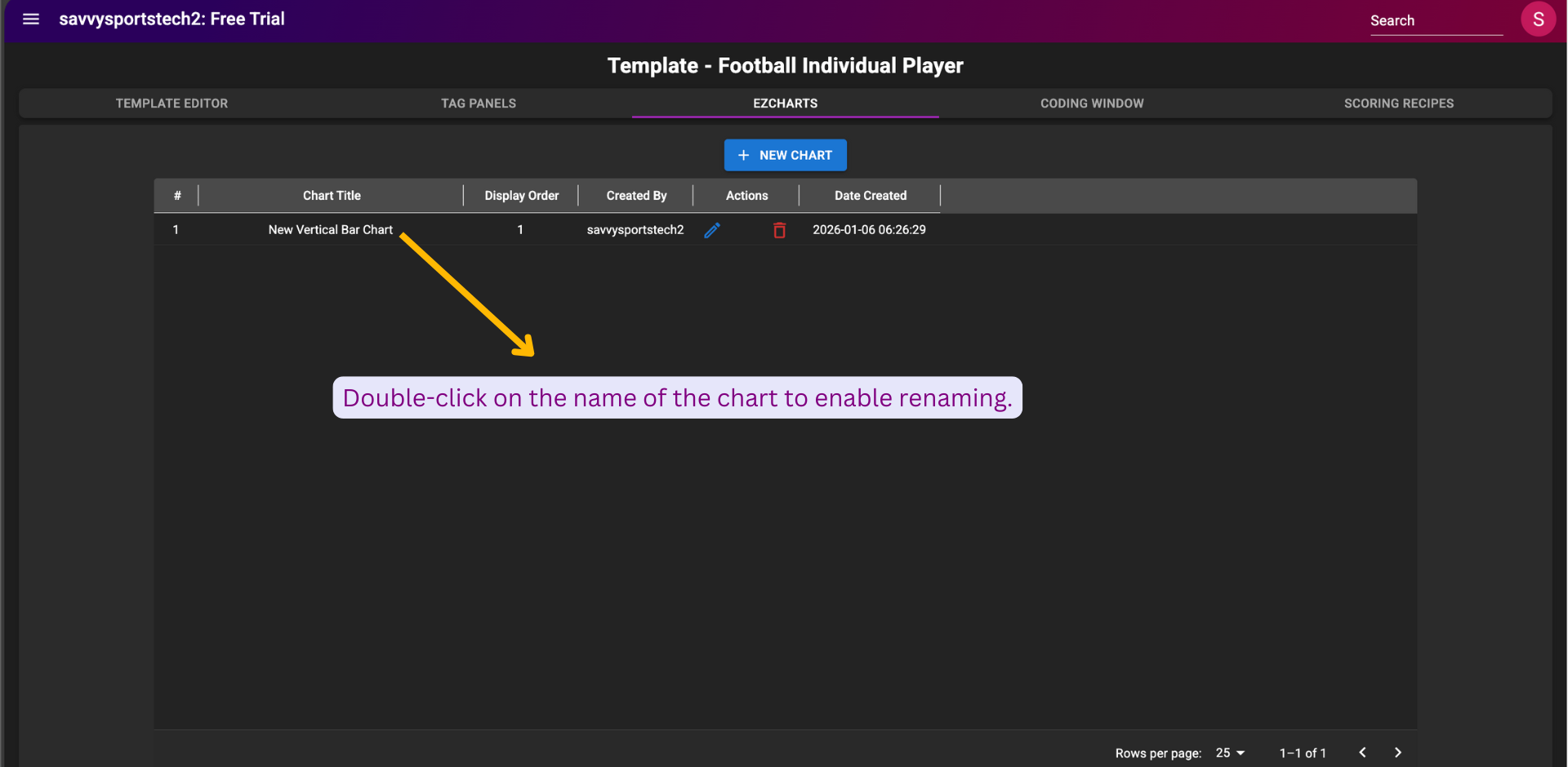 Introduction to EZ Charts EZ Charts in the SPAN Sports Performance Analysis Platform make it easy to create, view, and share dashboards of your choice. A key feature of EZ Charts is that each chart segment can be linked to video clips, so users can ...